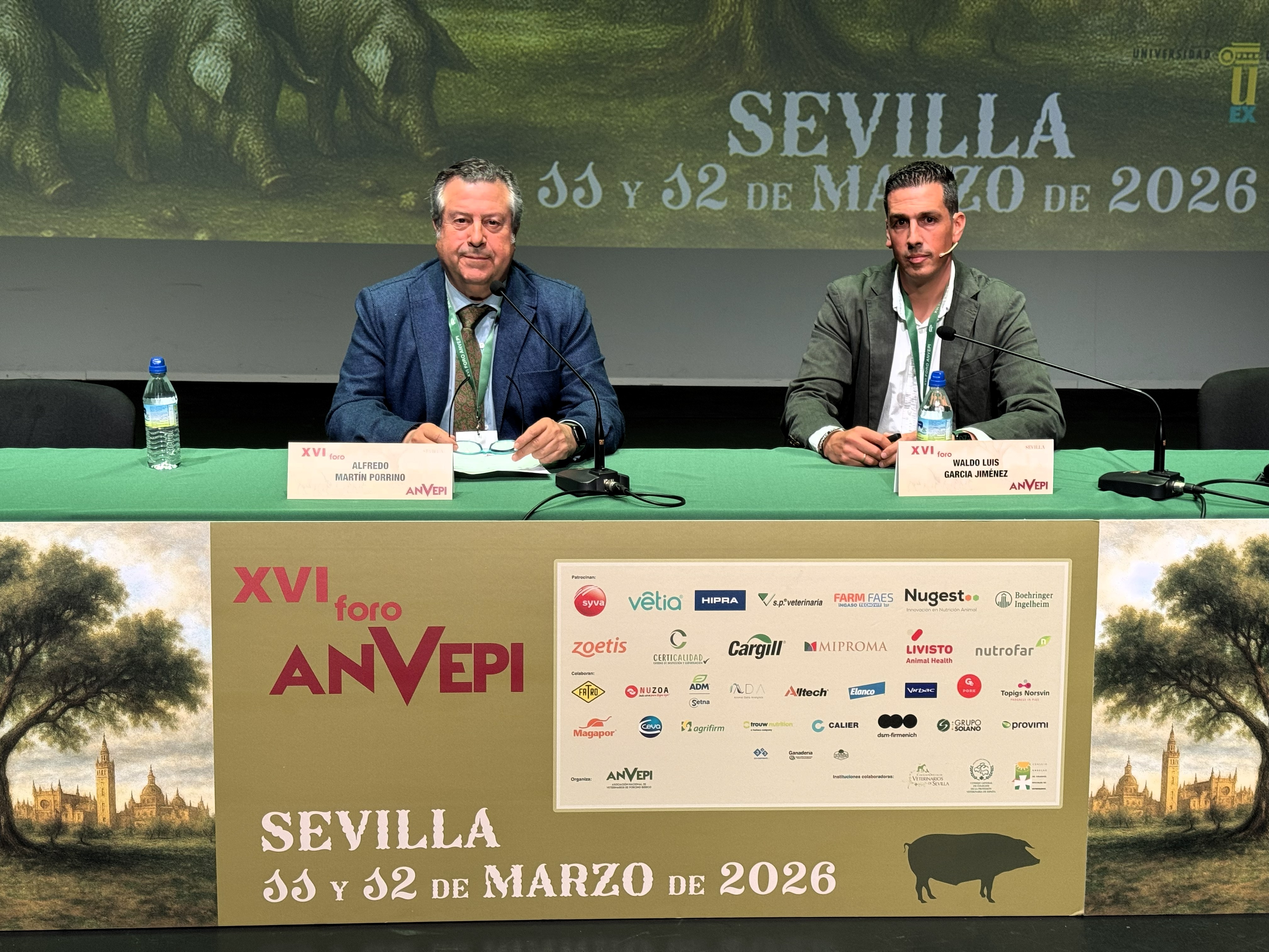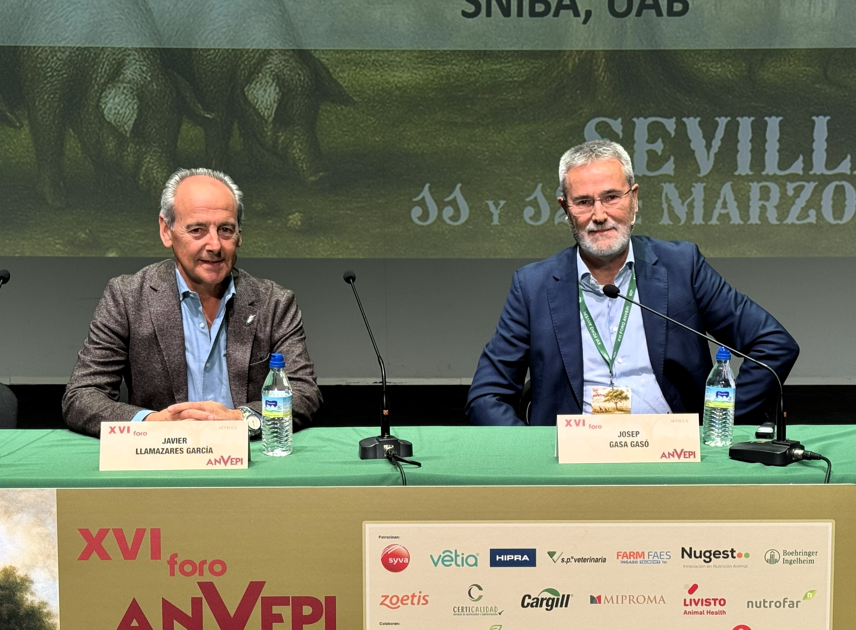 Inauguración XVI FORO. Santiago Sánchez Azpellániz, presidente del Colegio Oficial del Colegio de Veterinarios de Sevilla. Juan Luis Criado, presidente del Comité organizador del XI Foro y J. Anselmo Perea, presidente de ANVEPI.