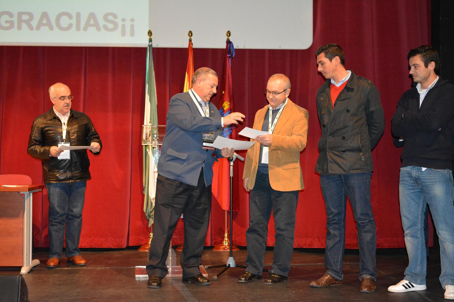 Manuel Guerra, alcalde se Aracena, directivos de ANVEPI y mimbros del Comité organizador del V Foro
