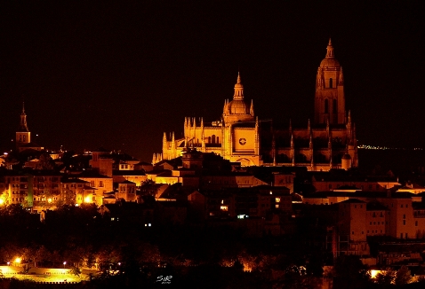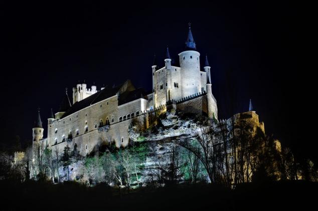 Vista de Segovia iluminada.