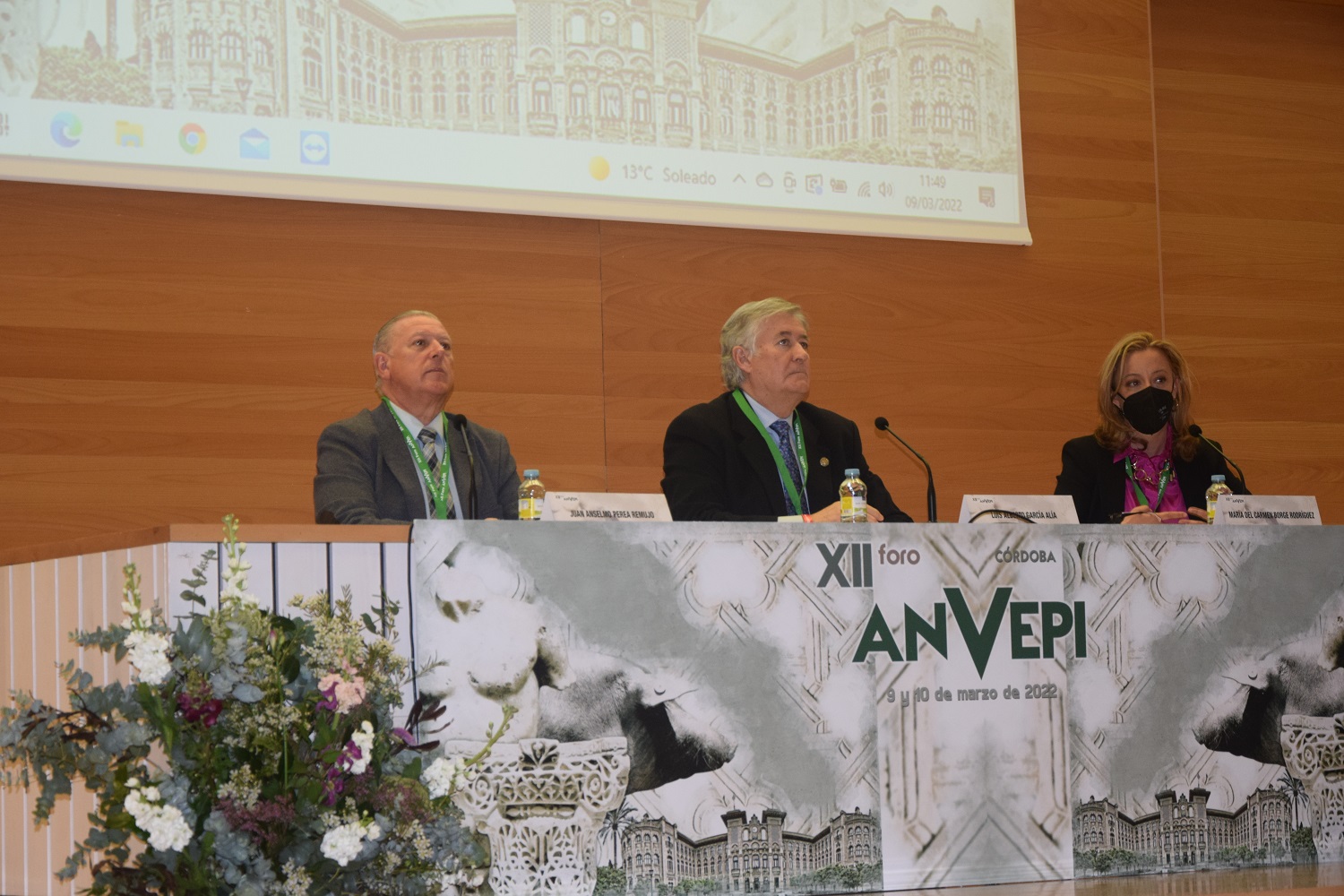 Inauguración XII Foro. Luis Alberto García Alía, Vicepresidente del Consejo General de Colegios Oficiales de Veterinaria de España, Carmen Borge, Presidente del Comité Organizador del Foro y Anselmo Perea, Presidente de ANVEPI.